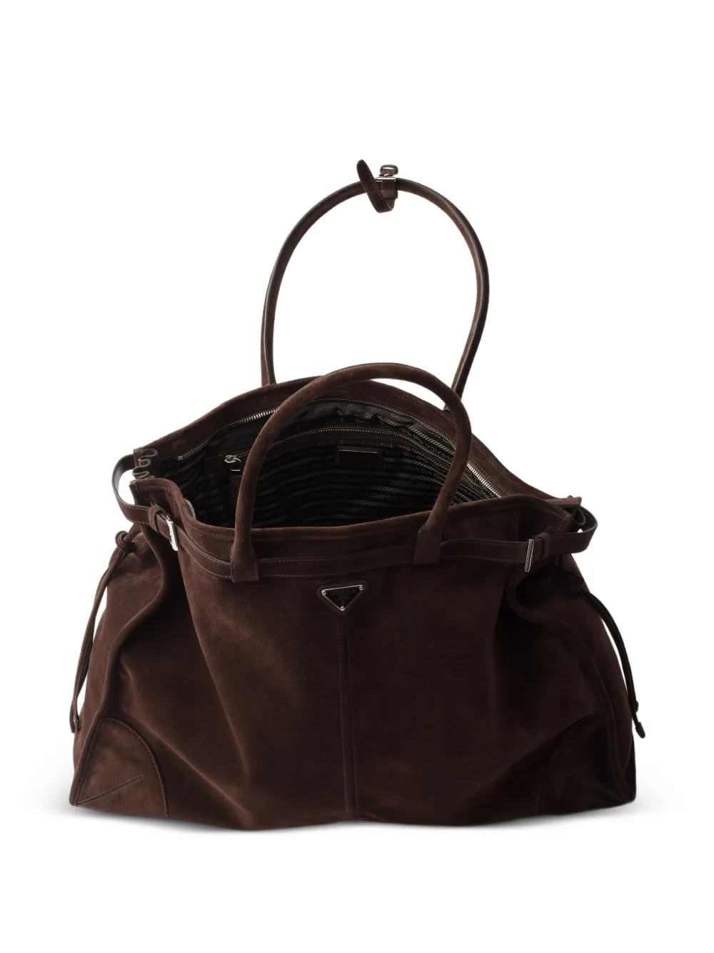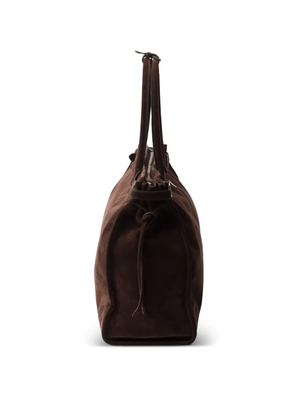 Highlights brown suede metal logo top handles detachable, adjustable leather shoulder strap with buckle drawstring fastening FARFETCH ID: 33124281 Brand style ID: 2VG128VOOO2C4S Composition Outer: CALFSKIN 100% Lining: Recycled Nylon 100%