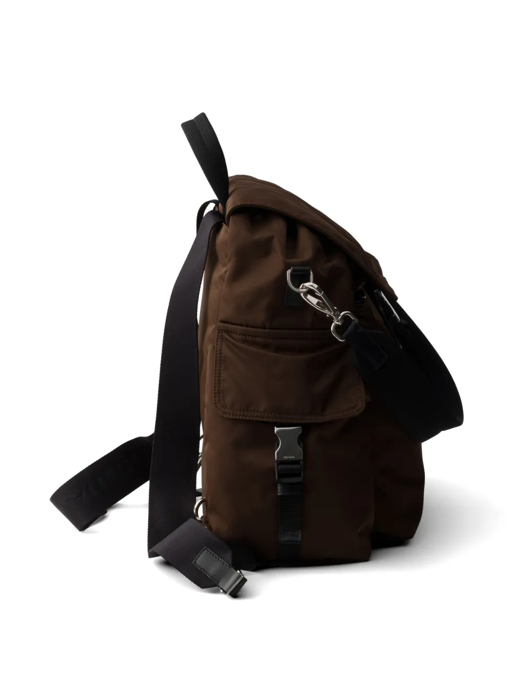 The Explore bag, a perfect synthesis of sophistication and functionality, has a multi-pocket silhouette with soft lines. Designed for urban explorations and outdoor adventures, the style comes with a detachable handle so that it can also be worn slung over the shoulder. The combination of Re-Nylon and leather expresses the dualism of the design that combines technical details and refined notes.