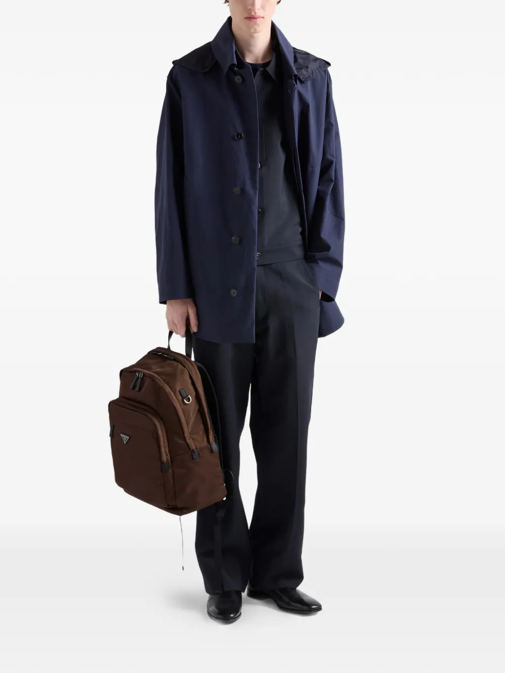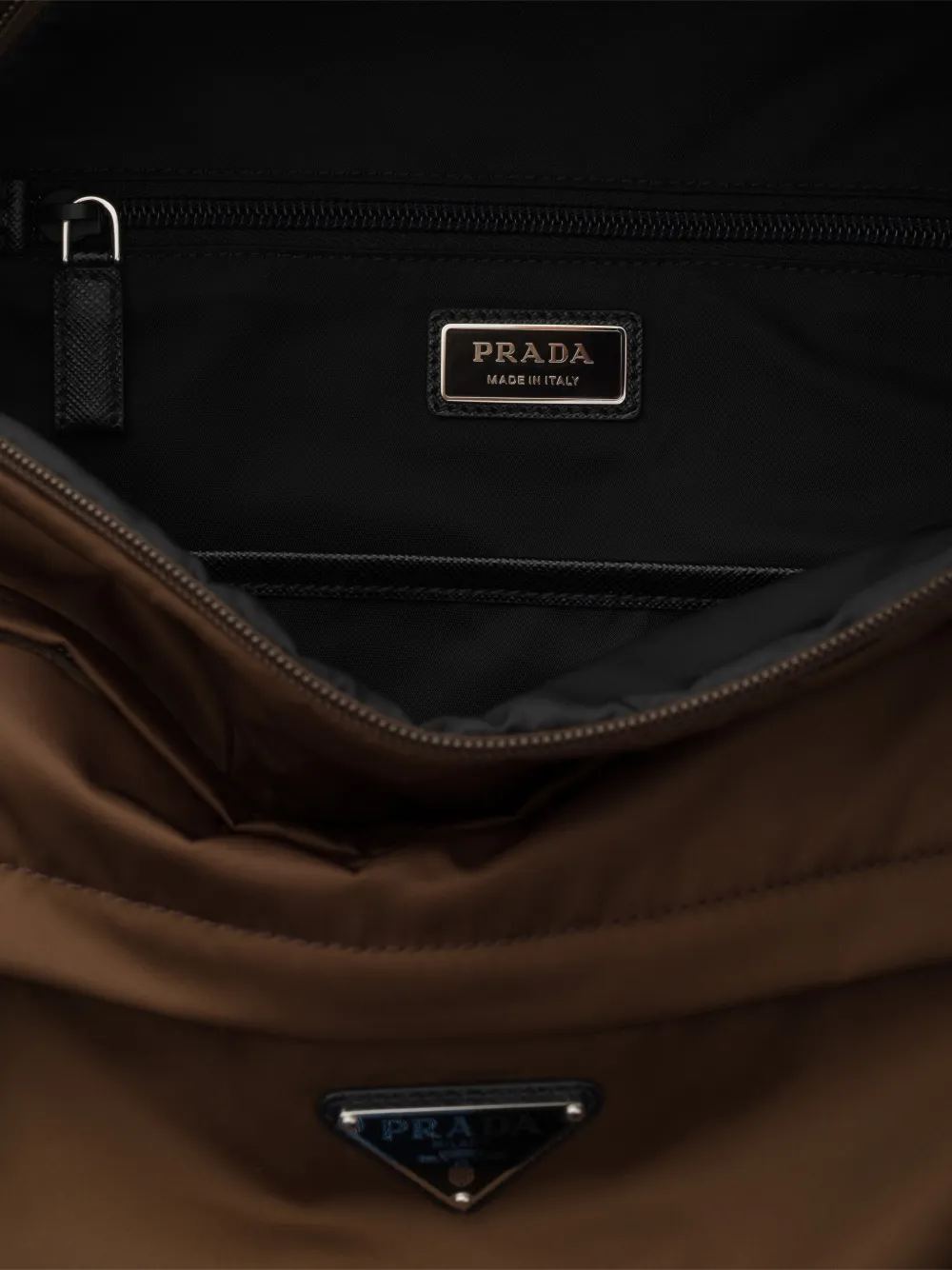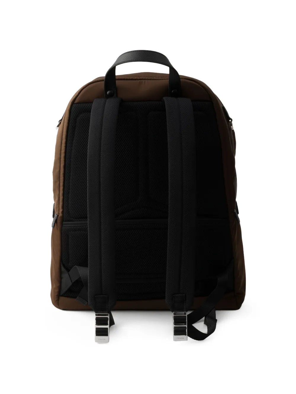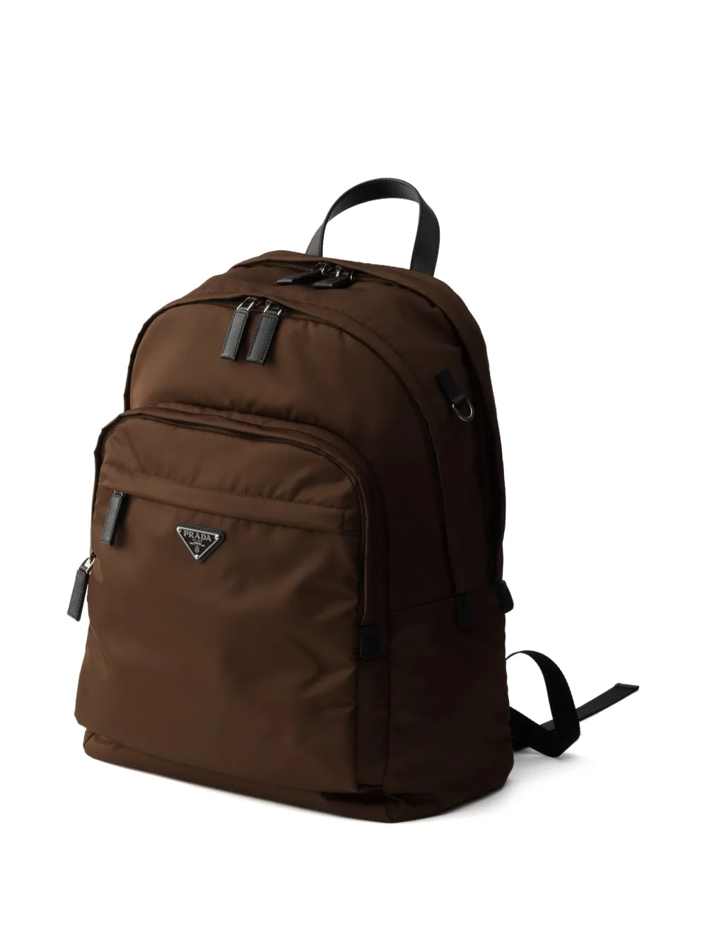 This roomy backpack with a technical look is made of Re-Nylon, the innovative technical fabric produced from recycled plastic trash recovered in the ocean. The design of the accessory, with main compartment with zipper closure, stands out for its Saffiano leather details. Saffiano leather, an iconic material of Prada, is synonymous with luxury and identifies with traditional Italian leather goods production. The calf leather of the highest quality is defined by a crosshatch pattern and wax finish.