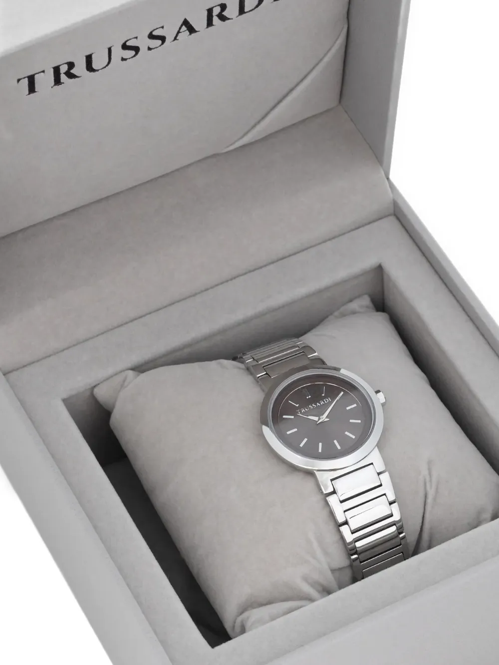 Highlights silver-tone round case brown dial baton markers bezel bracelet strap quartz movement Original box included. Imported FARFETCH ID: 33063440 Brand style ID: R2453171507 Composition Mineral Glass, stainless steel